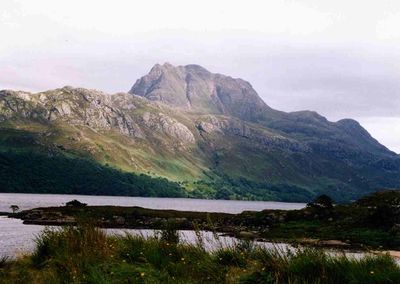 Slioch rises to 981 meters above sea level, standing prominently on the northern shore of Loch Maree with steep crags on three sides.