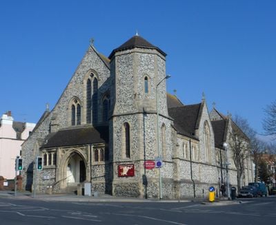 The church building occupies a large corner site on Queen's Park Road with Early English style architecture and accommodates up to 900 worshippers.