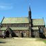 St Mary's Church features a four-bay nave with north and south aisles, constructed from red sandstone with an octagonal bell-turret on the east gable.
