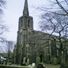 St Mary's Church stands with sandstone walls and a slate roof, featuring a prominent west tower topped by a needle spire and angular buttresses.