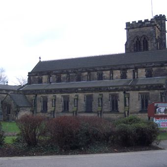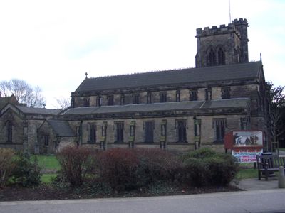 The church features Victorian Gothic architectural elements, with a prominent western entrance and an organ chamber added in 1876.