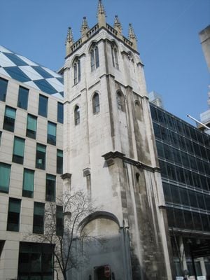 St Alban, Wood Street, Medieval church tower in Wood Street, City of London, England.