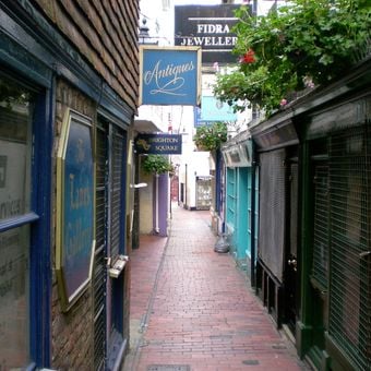 The Lanes is a shopping district in central Brighton formed by several narrow pedestrian alleys that create a network of walkways lined with independent boutiques, antique dealers, jewelry stores, and specialty shops. The area spreads across the blocks between East Street, Ship Street, and North Street, offering a varied selection of retail experiences and local commerce.