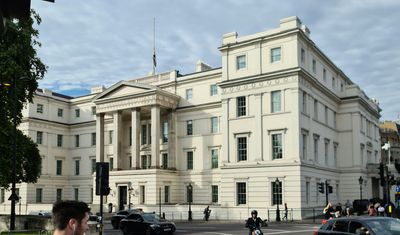 The Lanesborough occupies a 1719 building at Hyde Park Corner, featuring 93 rooms decorated with Regency period furnishings and handcrafted details throughout the property.