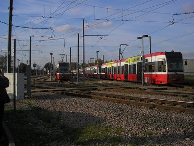 The depot provides stabling space for 24 tram sets and includes specialized equipment such as wheel lathes, washing stations, and maintenance pits.