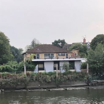 The Boathouse spans 7500 square feet across two floors, featuring sound-proofed studios, a paved terrace, and a glazed conservatory on the River Thames bank.