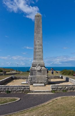 The Portland Cenotaph stands at New Ground, overlooking Chesil Beach and both sections of the island from its position near Portland Heights Hotel.