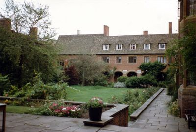 Westcott House consists of multiple connected structures, including a chapel, dining hall, library, and residential accommodations arranged around an Old Court garden.