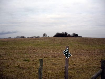 The archaeological site of Woolbury spans across a chalk hill, featuring ancient fortification structures and defensive earthworks that define its perimeter.