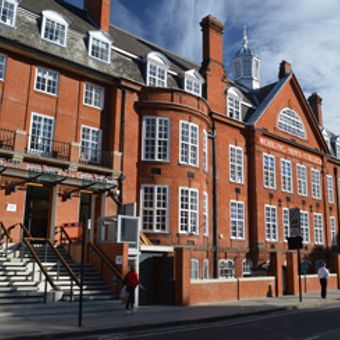 The Working Men's College occupies a substantial brick building with architectural features characteristic of early 20th-century educational structures in north London.