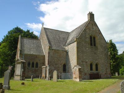 The grounds contain the Broun Aisle from 1864, built after the family's internal burial space closed due to parishioner concerns.