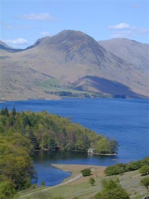 Yewbarrow rises to 628 meters above sea level, presenting a steep ridge formation that resembles an upturned boat when viewed from Wast Water.