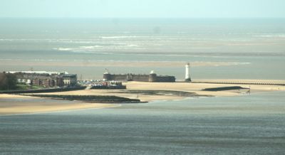 The New Brighton beach stretches along three-quarters of a mile of golden sand at the northeastern tip of the Wirral Peninsula, facing Liverpool across the Mersey.