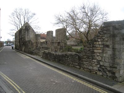 Town wall: remains of E side of town wall S of East Street and N of Gods House Tower