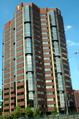 Metropolitan House stands 69 meters high with 19 floors, featuring a rectangular shape and modern architectural elements at Five Ways intersection.