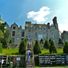 The stone fortress combines a medieval keep with a Jacobean mansion, featuring wooden doors from 1300 and restored architectural elements throughout the structure.
