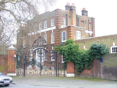 Montrose House stands at 186 Petersham Road, featuring late 17th-century architecture with a substantial brick wall surrounding the property.