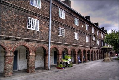 Built in 1681, the structure served as housing for a master and 39 poor freemen or widows, representing an early form of welfare provision in the city. This charitable model reflected growing community responsibility for caring for vulnerable residents during the late 17th century.
