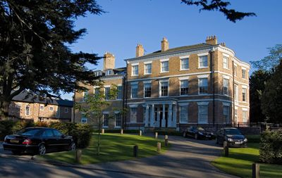 The three-story mansion features yellow brick construction with stone dressing, slate roofing, and a symmetrical five-bay frontage on Beverley Road.