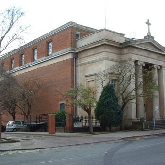 St Edmund's Church features symmetrical architecture with grand columns and pediments, representing the refined elements of Neoclassical design from the 1830s period.