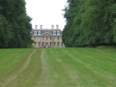 The limestone building features two storeys, an attic, and nine bays with a rectangular floor plan spanning across 120 acres of wooded parkland.