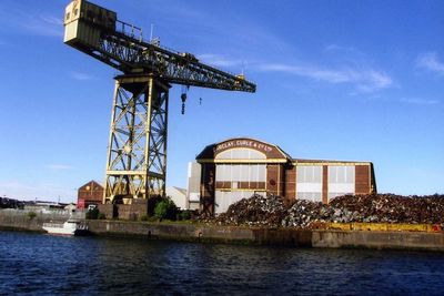 The crane represents one of four remaining Titan structures on the River Clyde, demonstrating Scotland's industrial engineering achievements of the early 20th century.