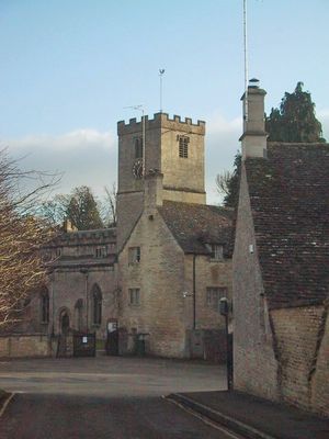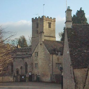 The Church of St Mary stands at coordinates 51.7571 latitude and -1.8301 longitude, featuring stone architecture and stained glass windows throughout its structure.