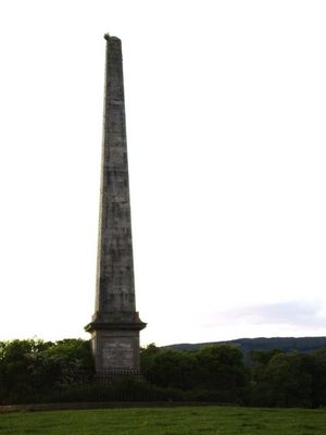 The monument commemorates Major-General Robert Walter Stewart, the 11th Lord Blantyre, who served with the Duke of Wellington during the Napoleonic Wars.