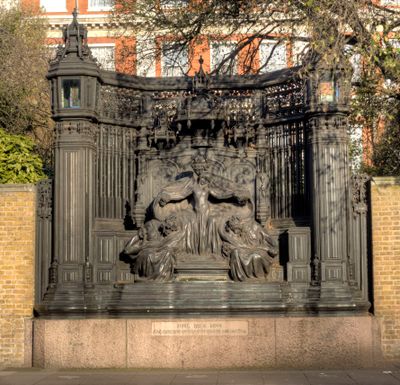 Alfred Gilbert completed this Grade I listed memorial in 1926 to commemorate Alexandra of Denmark, who served as Queen consort from 1901 to 1910.