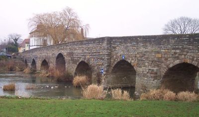 Built in the early 15th century, the bridge incorporated stone from Alcester's demolished priory during 16th-century repairs and sustained damage during Charles I's retreat in 1644.