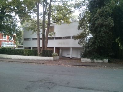 The structure maintains its original 1930s architectural elements, displaying the integration of modernist design within a traditional London neighborhood setting.
