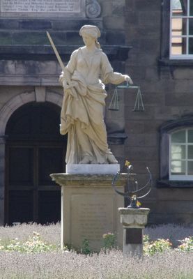 Statue of Justice in Courtyard of Sir William Turners Hospital