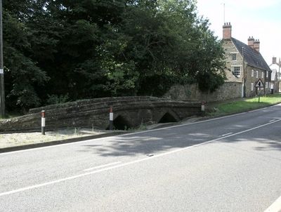 Packhorse Bridge Over River Cherwell, packhorse bridge in Charwelton, West Northamptonshire, England, UK