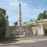 The memorial features a 54-foot limestone obelisk with a three-sided screen wall containing carved swags and wreaths at its base.