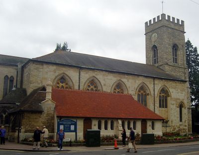 The Parish Church of St Mary and St Giles features a 15th-century tower with a nave supported by slender fluted columns and a vaulted ceiling with plaster ribbed groins.
