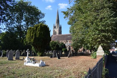 The red brick Church of St Mary features a prominent tower with ten bells, stained glass windows, and a pipe organ with three manuals and 2,400 pipes.