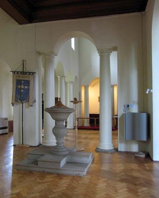 The church contains an organ from the 1960s with pipes arranged in tub formations on both sides of the chancel entrance.