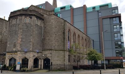 The building merges its religious architectural origins with modern pub functions, maintaining granite construction typical of Aberdeen's architectural heritage.