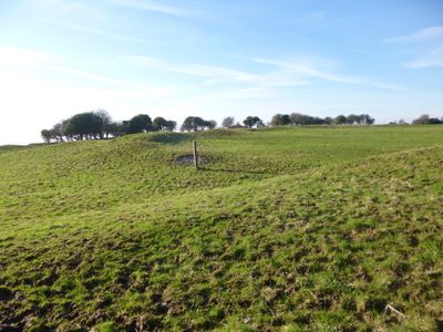 The circular hillfort encompasses two enclosures on Keynston Down, with the inner section measuring 3 acres and the outer section spanning 10 acres.