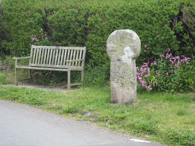 Milestone, Little Trethvas Farm, on straight, N of filling station