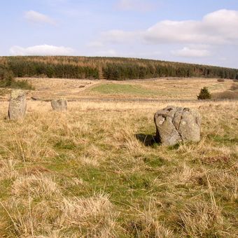 Stone circle and stone alignment 370m west of Threestoneburn House, archaeological site in Northumberland, England