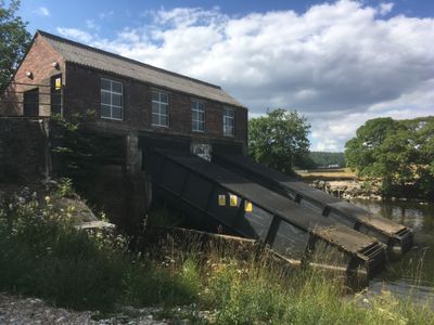 Hydro-electric power house and associated weir 250m north west of Tin Bridge, hydroelectric power station in Grassington/Threshfield, North Yorkshire, England, UK