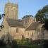 The Church of St John the Baptist stands with a western tower constructed in Somerset style, featuring diagonal buttresses and a polygonal northeast stair.