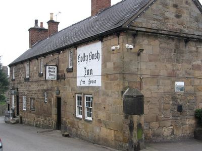 The Holly Bush Inn stands at 2 Holly Bush Lane, featuring traditional architectural elements from the 17th or early 18th century in its stone construction.
