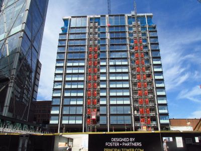 Located near Liverpool Street Station, Principal Place contains 44,500 square feet per floor with a 15,000 square foot reception area and multiple dining establishments.