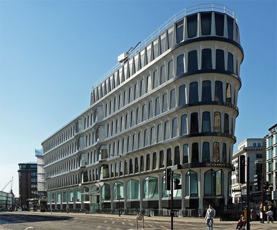 The 1977 construction represents a significant shift in architectural design, incorporating modern materials while maintaining sensitivity to the historical London cityscape.