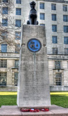 The Chindit Memorial is a monument at Victoria Embankment in London, comprising a bronze Chinthe sculpture atop a four-meter Portland stone pillar. The structure rests on three steps of red granite and marks the riverbank with its upright form.