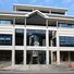 The Kingston upon Thames Crown Court features a symmetrical main frontage with eleven bays, including a central glass atrium and modern oriel window on Penrhyn Road.