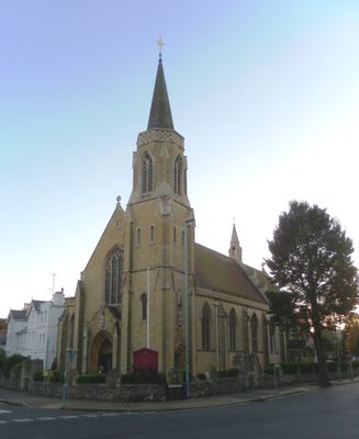 The church tower, completed in 1912, stands as a reference point in Eastbourne's skyline at the intersection of Meads Road and Grange Road.