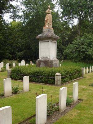 The cemetery contains the Spirit of the Army statue from 1878, commemorating soldiers from Britannia Barracks, and holds graves of numerous military personnel.